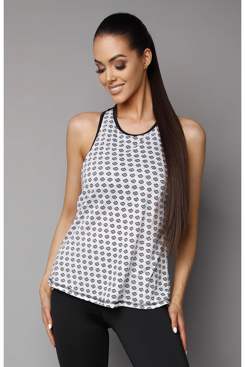 Bő felső toppal. A visszafogottságot, nőiességet és a kényelmet sugallja ez a fitnesz trikó. Könnyű, puha anyaga miatt kiváló választás lehet számodra. Tökéletesen követi minden mozdulatod. Akár jógázáshoz, aerobic órákhoz is bátran ajánljuk. Vaj színben, egyedi nyomott anyaggal.