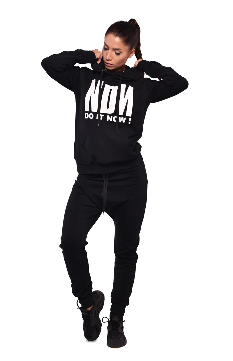 Szuper szett a hétköznapokra, túrázásra vagy akár edzéshez is. Meleg, puha pamutból készült, ami légáteresztő funkcióval is rendelkezik. A belebújós pulcsit kapucnival és egyedi jó minőségű vasalható nyomattal láttuk el. A hozzáillő csípő fazonú nadrág hátulján lévő zsebnél szintén visszaköszön ennek a nyomatnak a kicsinyített mása. Alul szűkített passzés megoldással, hogy jobban illeszkedjen a testedre. A derekat gumis szabással készítettük el, ami egy ülepes résszel párosul. Ha szeretnél kitűnni a tömegből ezt a szettet bátran ajánljuk.