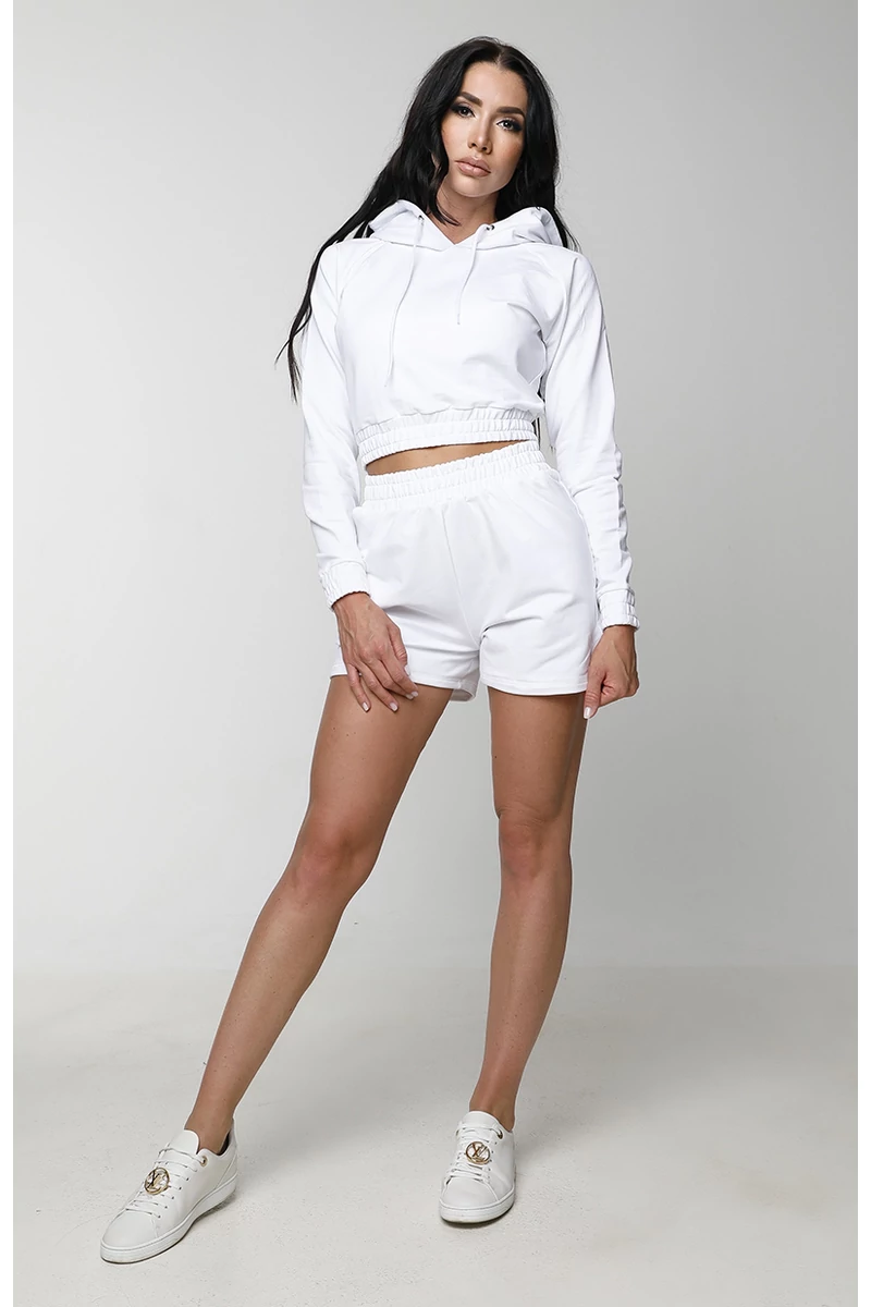 | Anyagösszetétel: 95% pamut 5% lycra. Kapucnis crop pulcsink egy vagány magasított derekú, bő fazonú shorttal. Rohangálós hétköznapokra vagy edzéshez kiváló választás. | |