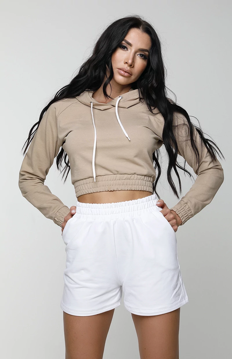 | Anyagösszetétel: 95% pamut 5% lycra. Kapucnis crop pulcsink egy vagány magasított derekú, bő fazonú shorttal. Rohangálós hétköznapokra vagy edzéshez kiváló választás. | |