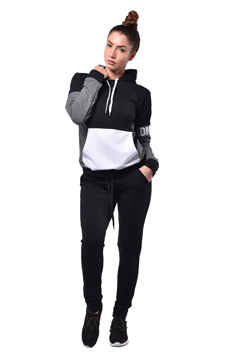 Különleges szabású pulóvert kombináltuk egy egyszínű pamut nadrággal. Az egyenes szűkített szabású nadrág illeszkedik a tested vonalára. A szellőzést is megfelelően biztosítja. A pulóver harmonikus színei kenguru zsebbel végződnek. Kapucnis kivitelezésű, ami nem csak funkcióját tekintve remek választás, de divatos is. A nadrág gumizásának köszönhetően illeszkedik a csípő vonalára.