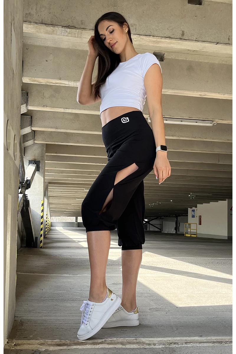 Fekete pamut anyagú térdnadrág. Oldalt sliccelt felvágásal igazán kényelmes szellős viselet. Edzésekhez vagy hétvégi programokhoz a legideálisabb viselett.